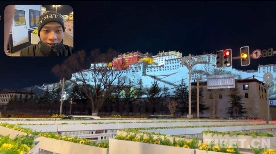 圖為關(guān)瑞忠與布達(dá)拉宮同框的視頻截圖。