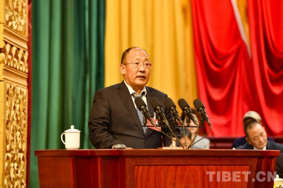 圖為西藏自治區(qū)政協(xié)委員屯旺在政協(xié)第十二屆西藏自治區(qū)委員會第四次會議中作大會發(fā)言 ?攝影:趙振宇