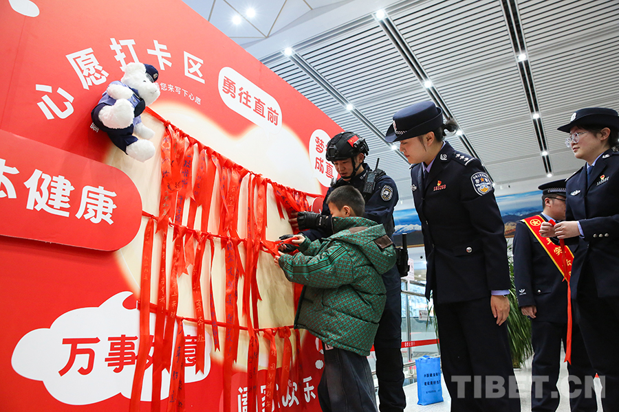 圖為春運(yùn)期間,青藏鐵警在格爾木站候車廳開(kāi)展情暖回家路活動(dòng)