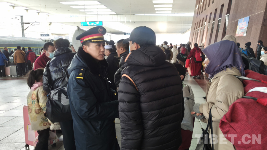 圖為春運(yùn)首日拉薩站為旅客送上祝福