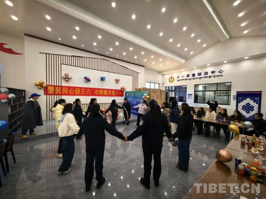 中國西藏網(wǎng)訊 為進一步鑄牢中華民族共同體意識,深化警民魚水深情,展現(xiàn)新時代基層女性工作者昂揚向上的精神風(fēng)貌,3月6日,西藏拉薩市城關(guān)區(qū)八一街道辦事處邀請轄區(qū)派出所民警,聯(lián)合舉辦“警民同心迎三八 巾幗建功暖八一”主題活動。街道、社區(qū)女職工與一線女民警代表,在歡聲笑語中迎接“三八”國際婦女節(jié)。