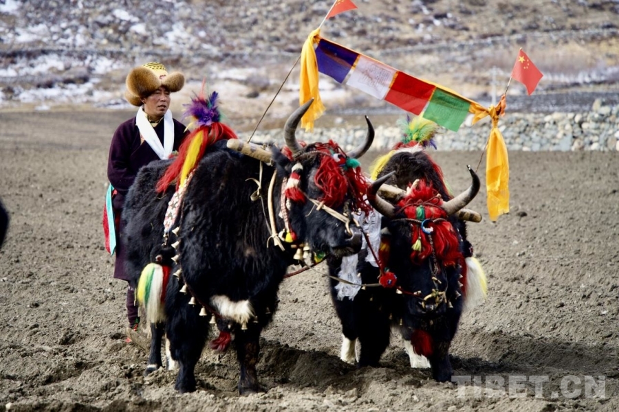 循聲而至的游客們,恰好撞見(jiàn)了這場(chǎng)高原春日里最盛大的農(nóng)事慶典。村民們身著節(jié)日盛裝,手捧潔白的哈達(dá)、象征吉祥的“切瑪盒”,牽著頭戴紅纓的耕牛,緩緩走向田野。這是西藏傳統(tǒng)天文歷算擇定的吉日,也是高原人家對(duì)豐收最美的愿望。