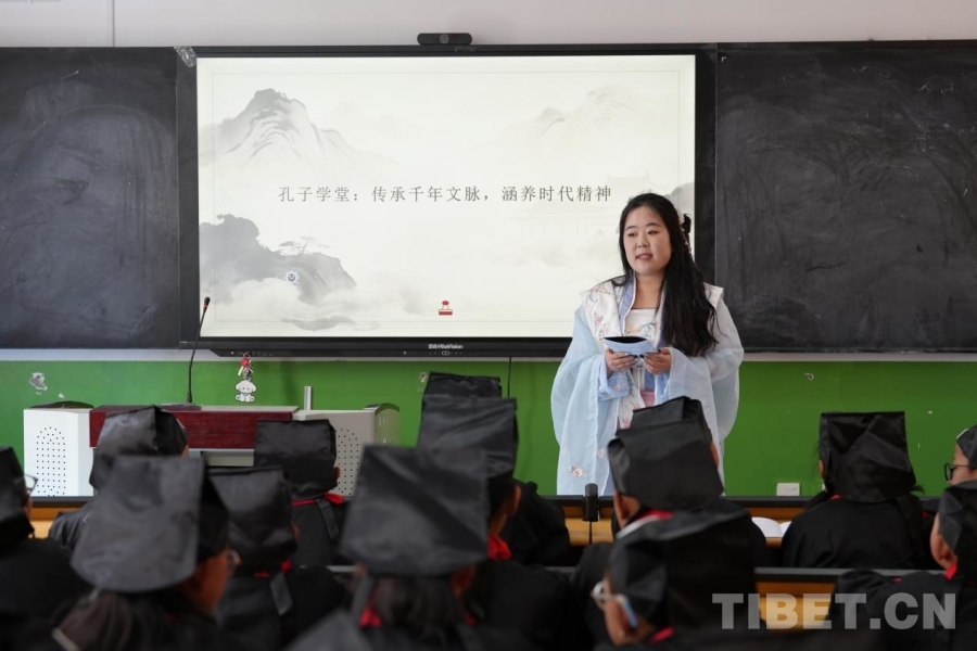 有一次,殷靚靚穿著漢服走進(jìn)課堂,飄逸的衣袂瞬間吸引力所有孩子的目光。看著孩子們滿(mǎn)眼的好奇,她和援藏團(tuán)隊(duì)的老師們萌生了新想法——依托山東儒家文化發(fā)源地的底蘊(yùn),在學(xué)校開(kāi)設(shè)中華傳統(tǒng)文化興趣班,建起“孔子學(xué)堂”。在這里,孩子們讀經(jīng)典、學(xué)禮儀,還和濟(jì)南的小伙伴同步開(kāi)展傳統(tǒng)文化活動(dòng),讓孩子們對(duì)千里之外的山東,多了一份更深的親近與向往。