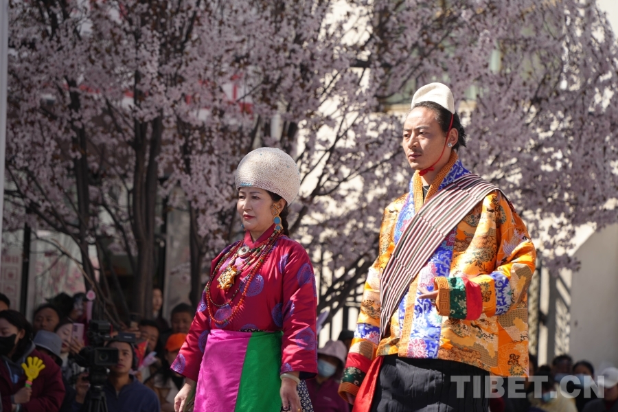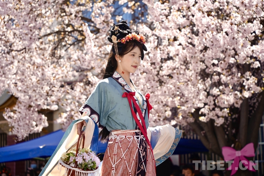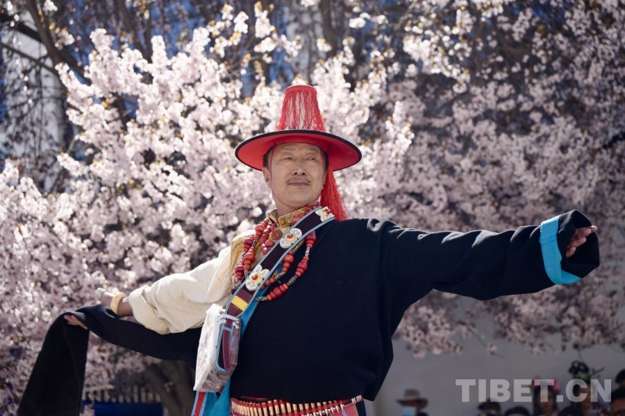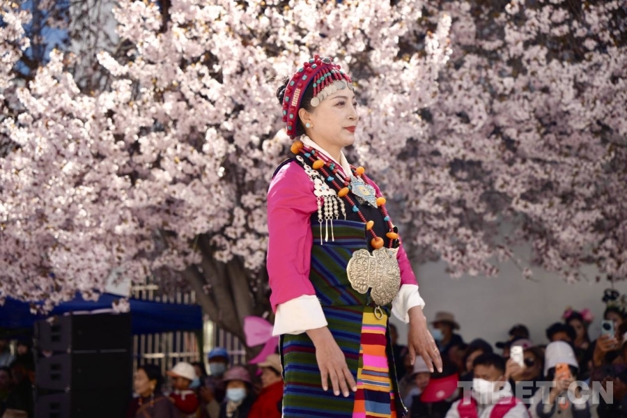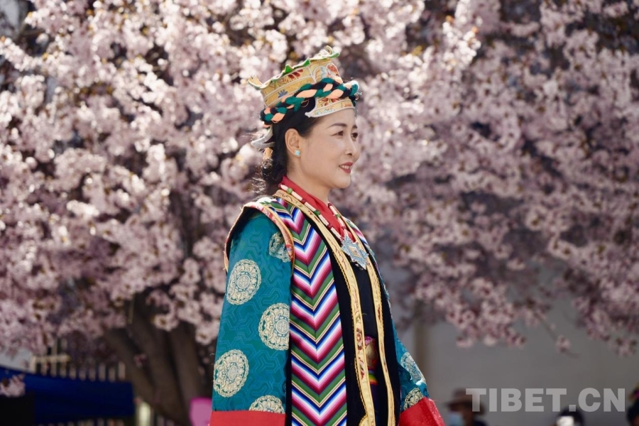 服飾文化是西藏傳統(tǒng)文化的重要組成部分,基本特征為肥腰、長(zhǎng)袖、大襟、右衽、長(zhǎng)裙、長(zhǎng)靴,并配有精美的金銀珠玉飾品。受自然環(huán)境、民風(fēng)民俗及生產(chǎn)方式影響,西藏服飾文化形成了鮮明的地域特色——拉薩服飾典雅莊重,日喀則服飾絢爛奪目,阿里服飾盡顯華貴風(fēng)范……傳統(tǒng)服飾與桃花交相輝映,為觀眾呈現(xiàn)了一場(chǎng)流光溢彩的視覺(jué)盛宴。(中國(guó)西藏網(wǎng) 記者/德吉卓瑪)