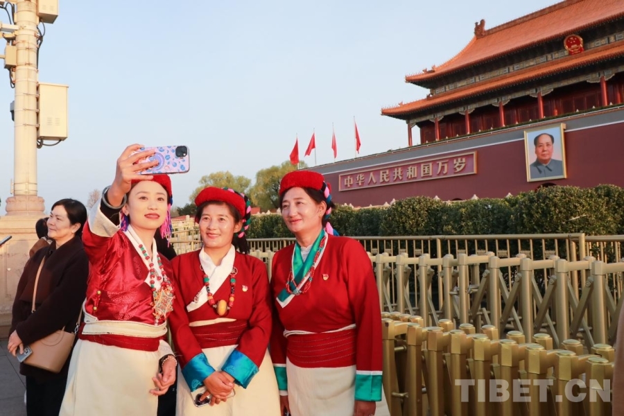紅旗獵獵,朝霞漫天,陽光正好。代表團成員紛紛在天安門廣場上合影,定格這難忘的瞬間。山南雖與北京相隔千里,但心與祖國緊緊相連。