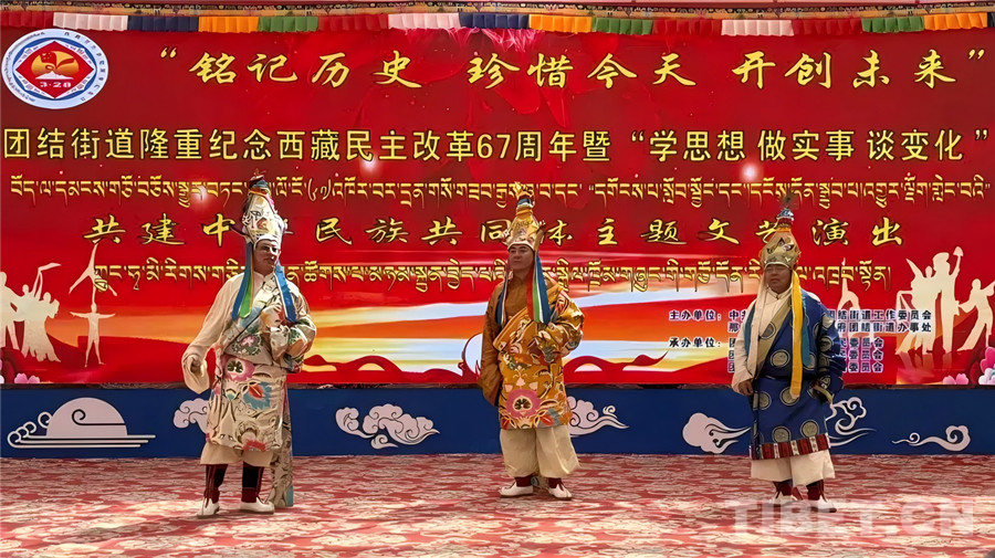 色尼區(qū)團(tuán)結(jié)街道舉辦紀(jì)念西藏民主改革67周年主題文藝演出 來源:色尼融媒