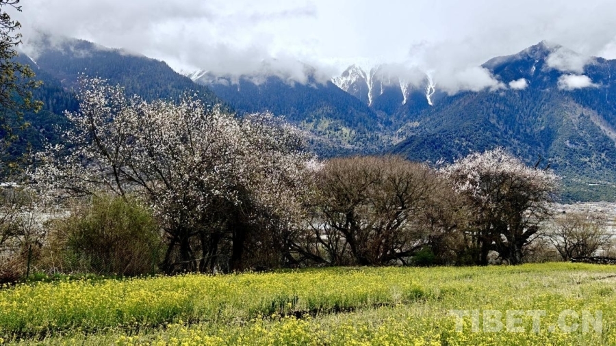 波密縣境內(nèi),近處油菜花金黃、桃樹粉黛,與遠處的雪山、森林交相輝映,繪就一幅絕美的生態(tài)畫卷。攝影:次旦拉姆