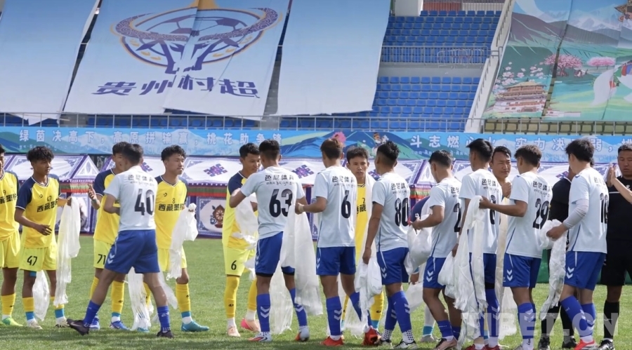 決賽現(xiàn)場(chǎng)雙方球隊(duì)成員互獻(xiàn)哈達(dá)