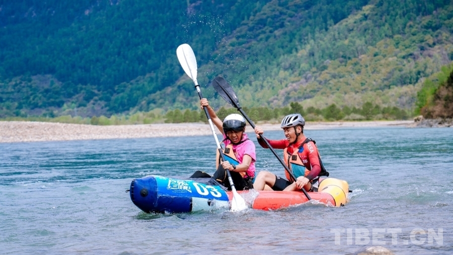 比賽依托易貢鄉(xiāng)獨特的高原生態(tài)資源和高海拔訓練基地優(yōu)勢,設置山地騎行、雙人皮劃艇、高原越野跑三大項目,全程28.5公里的賽道串聯(lián)易貢湖、原始森林、油菜花田,讓選手在競技中飽覽雪域春日盛景。賽事采用“兩人一組、不限性別”的自由組隊模式,吸引全國58支隊伍、116名運動員參賽,涵蓋專業(yè)選手與戶外愛好者,充分體現(xiàn)全民參與理念。賽場旁,當?shù)厝罕姛崆橹?,民俗風情與賽事氛圍相得益彰。