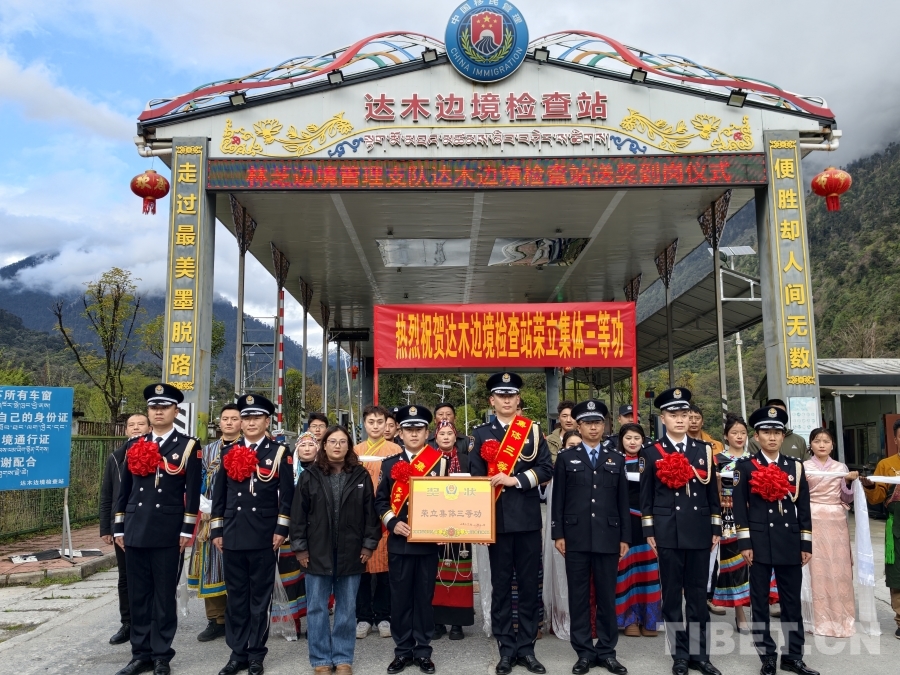 送獎小組為達(dá)木邊境檢查站集體三等功頒發(fā)證書