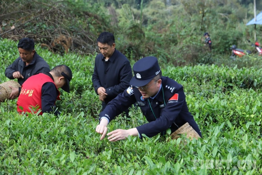 墨脫邊境派出所民警幫助轄區(qū)群眾采摘春茶 攝影:李欣雅