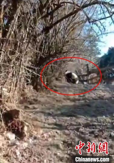 王康忠聞訊后,急忙趕去現(xiàn)場,用手機拍下了短暫的視頻。視頻顯示,這只野生大熊貓正飛快地向山上跑去。