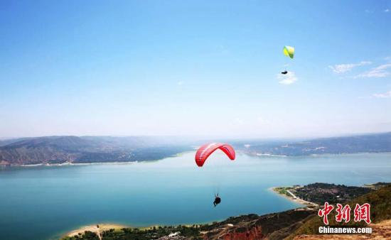 圖為游客體驗高空滑翔傘。郭紅 攝