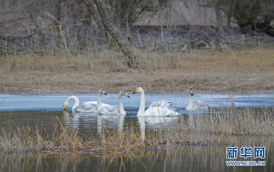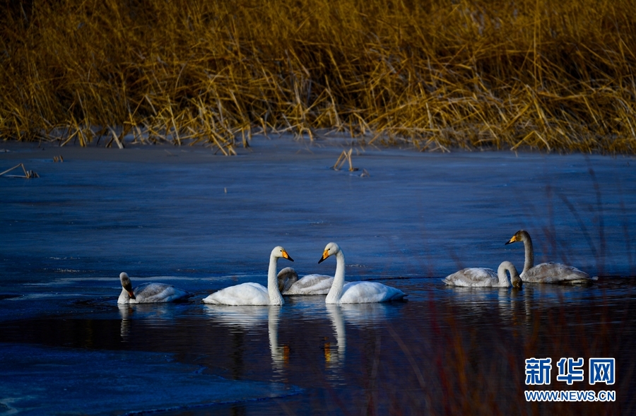 一群天鵝在千姿湖嬉戲。新華網(wǎng) 宋忠勇 攝