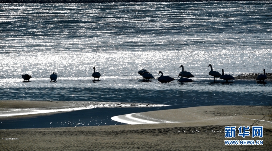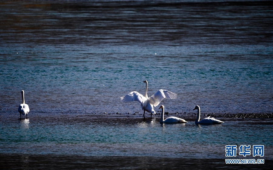 一群天鵝在千姿湖嬉戲。新華網(wǎng) 楊壽德 攝