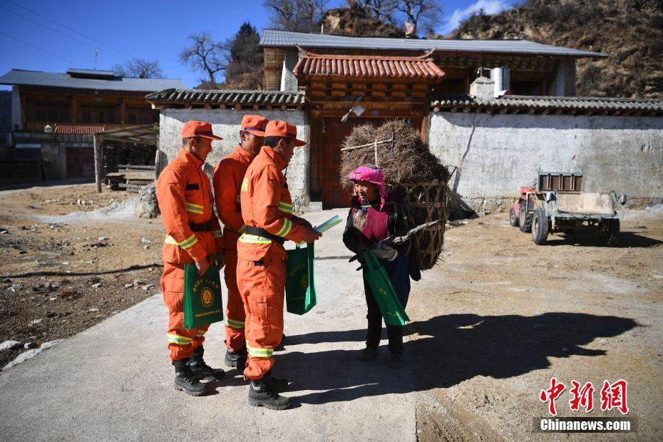 迪慶森林消防員進(jìn)村進(jìn)行防火宣傳。中新社記者 劉冉陽(yáng) 攝