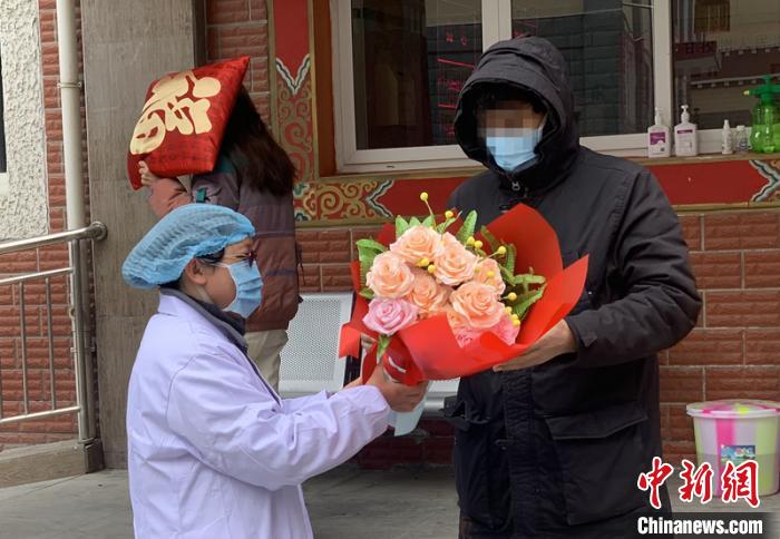 2月10日13時30分許,周某、降某走出了四川大學華西醫(yī)院甘孜醫(yī)院(甘孜藏族自治州人民醫(yī)院)傳染病區(qū)大門,醫(yī)護人員向兩人送上了代表祝福的鮮花。周某表示,積極配合后續(xù)觀察,希望早日回家。