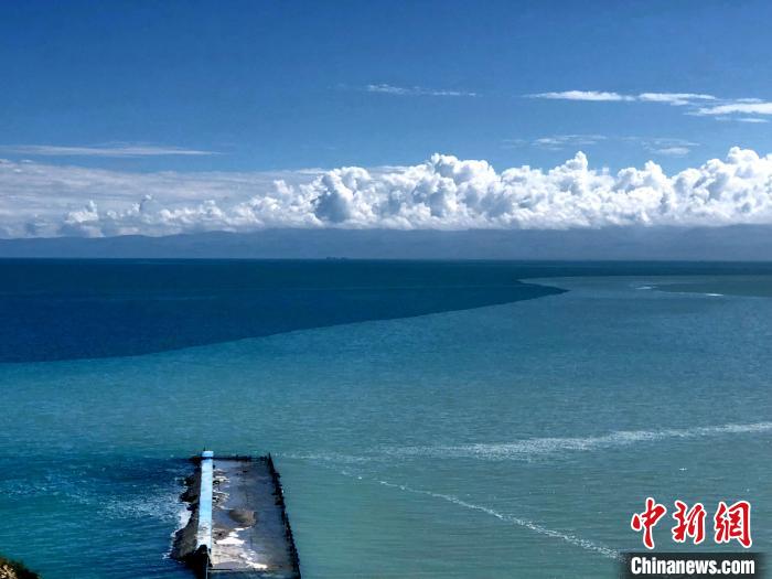 資料圖為青海湖水體因鹽度不同呈現(xiàn)不同藍(lán)色。羅云鵬 攝