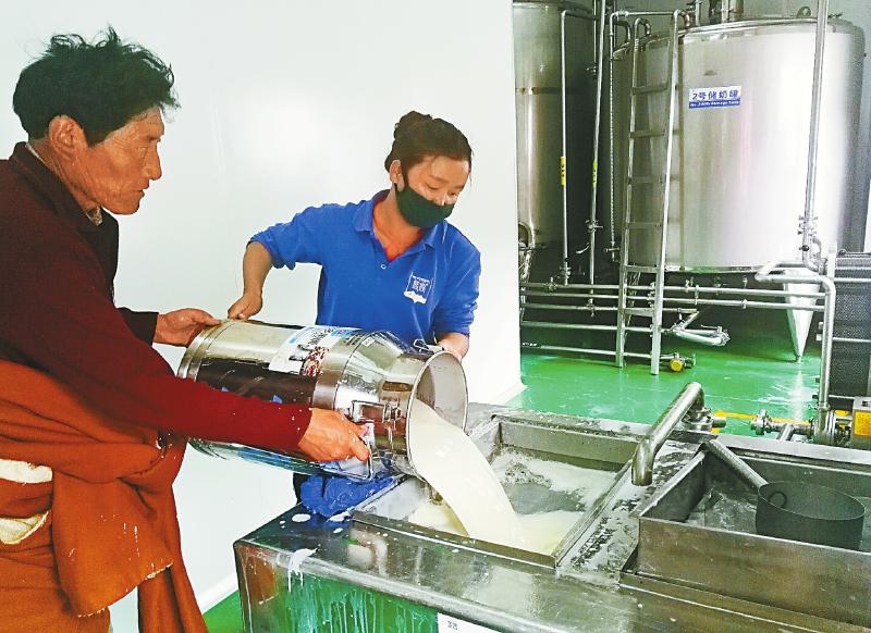 為了拓寬收入來源,省委統(tǒng)戰(zhàn)部還不斷助力當(dāng)?shù)貎?yōu)化產(chǎn)業(yè)結(jié)構(gòu)。協(xié)調(diào)引進(jìn)了康定藍(lán)逸情歌牧場(chǎng)食品有限公司,幫助村民發(fā)展牦牛奶產(chǎn)業(yè),四川海外聯(lián)誼會(huì)向村集體捐贈(zèng)160萬元入股公司。公司在俄達(dá)門巴村修建奶站,并協(xié)議優(yōu)先收購(gòu)村里牦牛奶。目前,該項(xiàng)目每年能帶動(dòng)全村增收40余萬元。