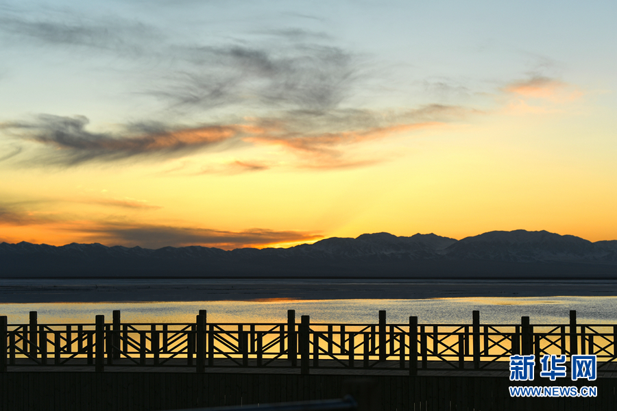 夕陽下的茶卡鹽湖。新華網(wǎng) 潘彬彬攝
