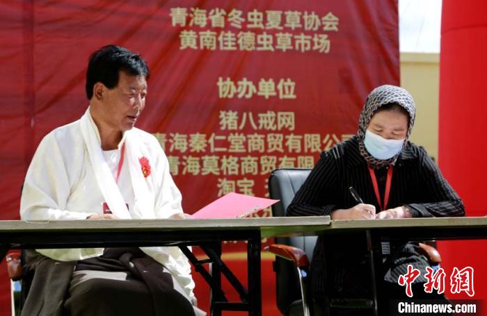 圖為企業(yè)家與供貨商在現(xiàn)場(chǎng)簽定供銷(xiāo)合同。青海省冬蟲(chóng)夏草協(xié)會(huì)供圖