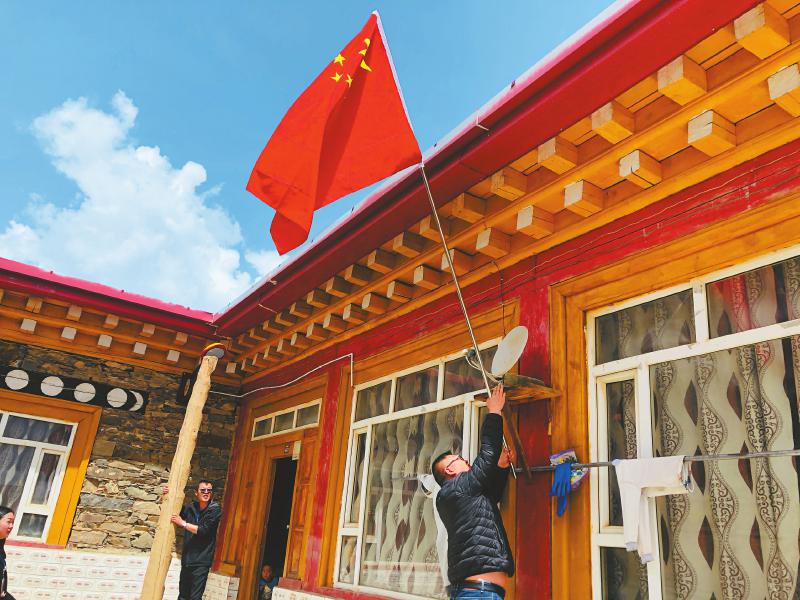 5月22日一早,在海拔3200多米的四川省阿壩州壤塘縣崗木達(dá)鄉(xiāng)達(dá)日村,村民白洛一起床,就爬到新建的藏式民房房頂掛上了一面國(guó)旗。“生活越過(guò)越好了?!边^(guò)去,白洛一家以放牧和挖藥材為生,勉強(qiáng)糊口。如今,依靠國(guó)家扶貧好政策和社會(huì)各界的幫扶,村里建起了中藥材基地,白洛也實(shí)現(xiàn)了就近就業(yè),家庭年收入達(dá)1.3萬(wàn)元,擺脫了貧困。她說(shuō),掛上國(guó)旗,是想對(duì)著國(guó)旗說(shuō)上幾句感謝的心里話。