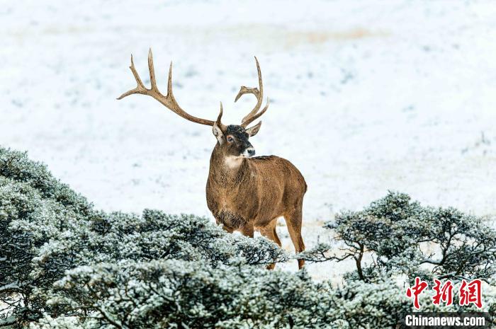 圖為青海江源地區(qū)的白唇鹿。(資料圖) 圖登華旦 攝