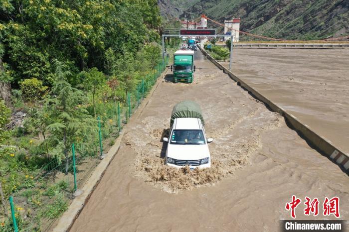 洪水通過丹巴一大橋。丹巴融媒體提供