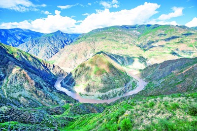 金沙江大拐彎也叫月亮灣,位于云南省德欽縣奔子欄鎮(zhèn)和四川省得榮縣瓦卡鎮(zhèn)交界處,是世界自然遺產(chǎn)“三江并流”區(qū)域的標志性景觀之一。徐譚 攝