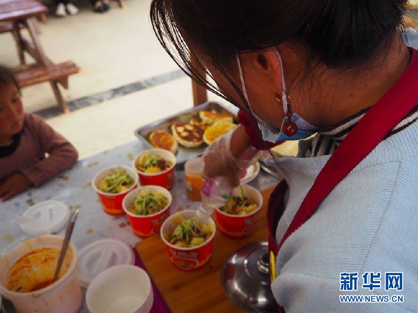 青海省黃南藏族自治州尖扎縣昂拉鄉(xiāng)德吉村村民在美食廣場制作特色小吃(5月27日攝)。新華社記者 白瑪央措 攝