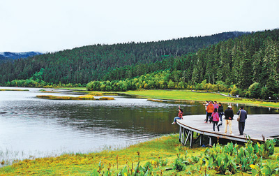 游客在普達措國家公園內游覽。新華社記者 張譽東 攝