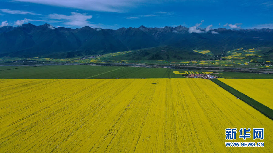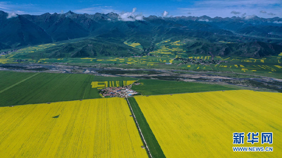 這是7月22日拍攝的門源回族自治縣的油菜花(無(wú)人機(jī)照片)。新華社記者 吳剛 攝