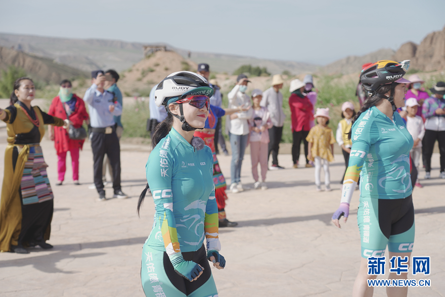 圖為“挑戰(zhàn)2020”環(huán)湖精英行“網(wǎng)紅”團(tuán)隊(duì)在貴德國(guó)家地質(zhì)公園準(zhǔn)備騎行。新華網(wǎng) 魚昊 攝