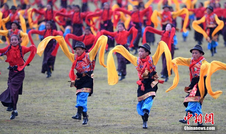 圖為理塘群眾正在進行鍋莊表演。 劉忠俊 攝