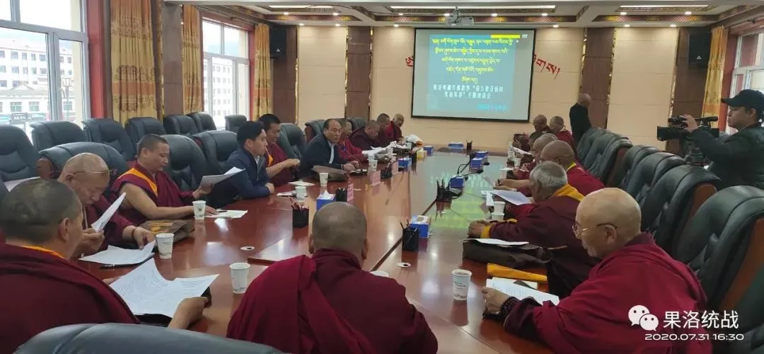 7月31日,青海省果洛州組織22名藏傳佛教界代表人士召開“奮力建設(shè)新時代新果洛”主題座談會。