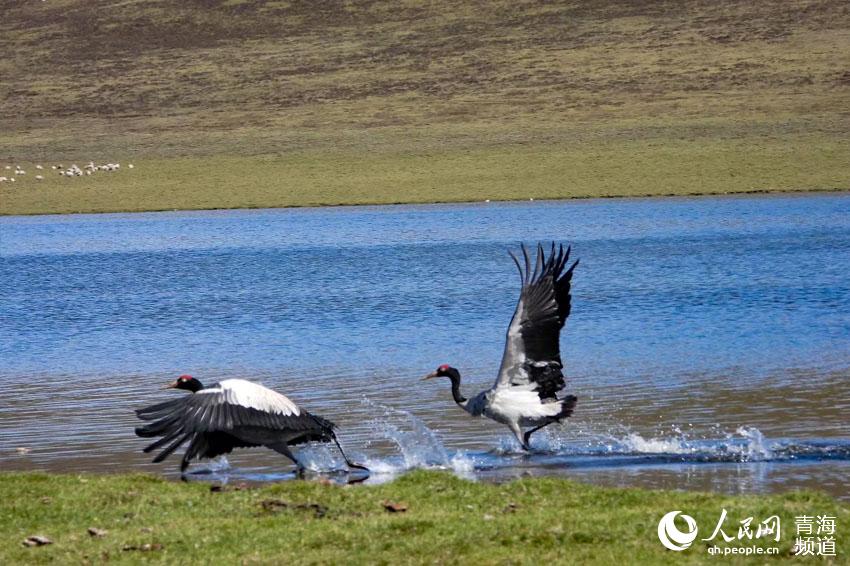 晴空一鶴排云上,便引詩情到碧霄。近日,在青海省海北州祁連山腹地的花海鴛鴦濕地,兩只黑頸鶴在此棲息,它們頭頂鮮紅,羽毛潔白,時(shí)而在湖邊嬉戲,時(shí)而翱翔在天空中,雙腿纖細(xì),神采飄逸,不禁讓人沉醉。[詳細(xì)] -