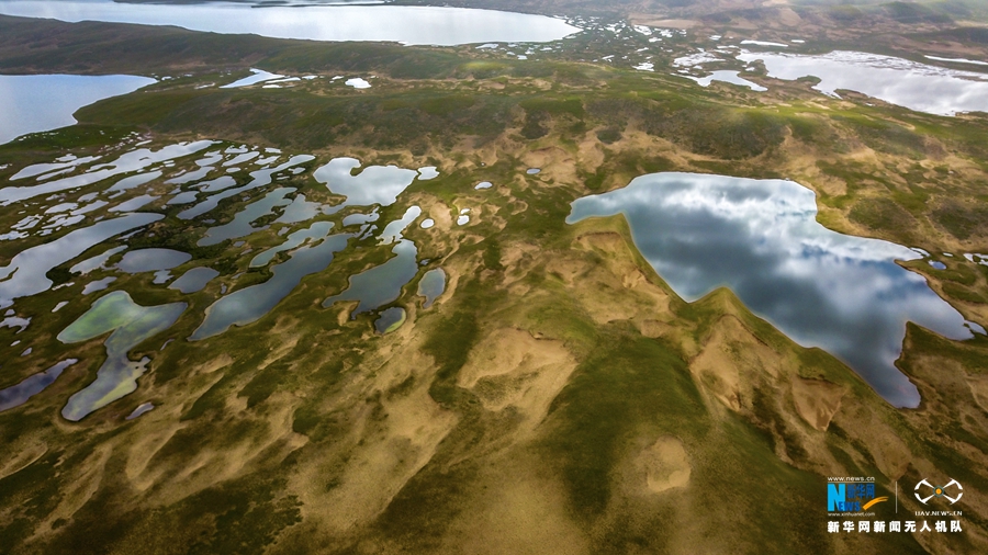 素有“千湖之縣”的瑪多縣境內(nèi)的湖泊。(航拍圖新華網(wǎng) 宋忠勇 攝)