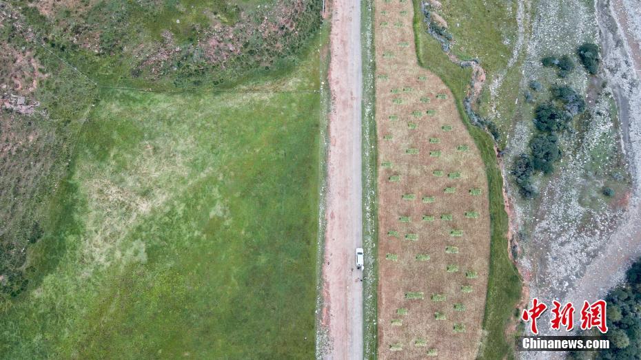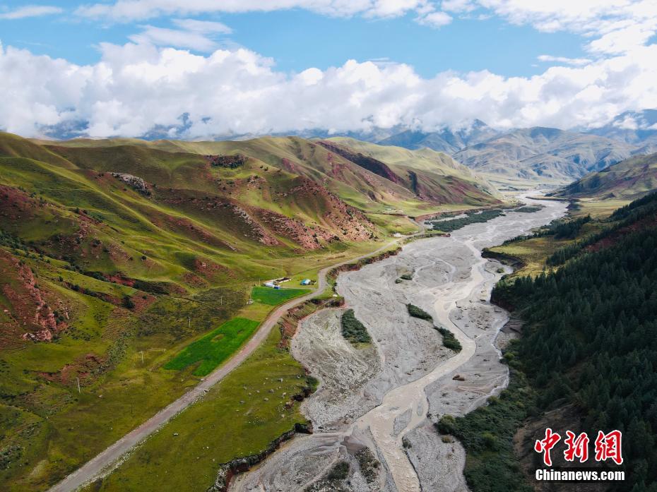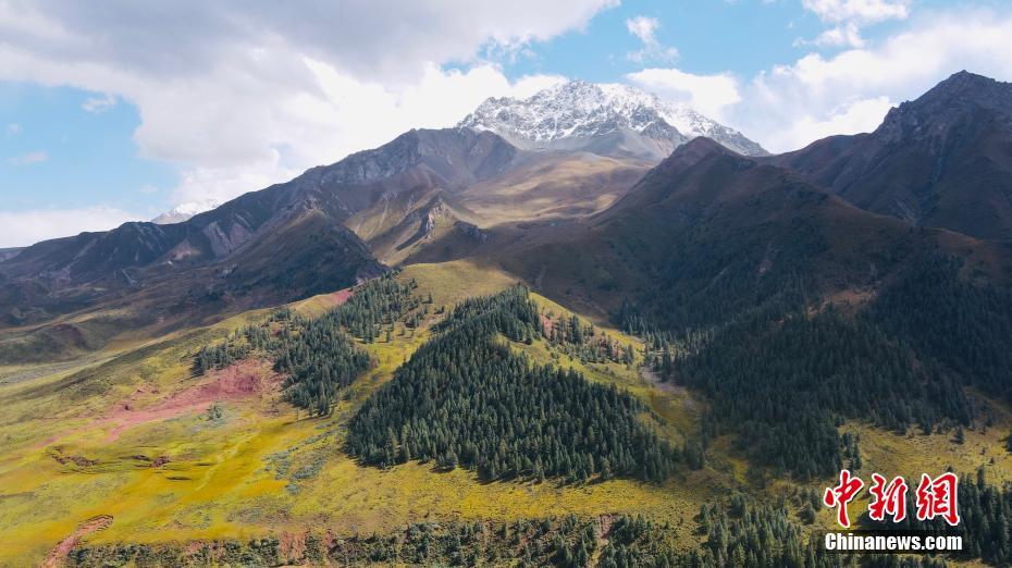 9月9日,航拍祁連山國家公園青海片區(qū)油葫蘆自然風(fēng)景區(qū)美景。初秋時節(jié),祁連山國家公園青海片區(qū)草地漸黃,天高云淡,勾勒出一幅色彩斑斕的秋日美景圖。中新社記者 李江寧 攝