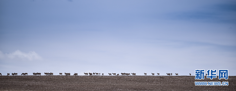 青海可可西里地區(qū),一群雌性待產(chǎn)藏羚羊通過(guò)青藏公路后向卓乃湖行進(jìn)(2016年6月7日攝)。新華社記者 吳剛 攝