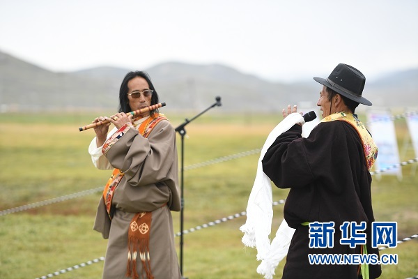 瑪沁縣大武鄉(xiāng)格多村的文藝隊(duì)表演。新華網(wǎng) 潘彬彬 攝