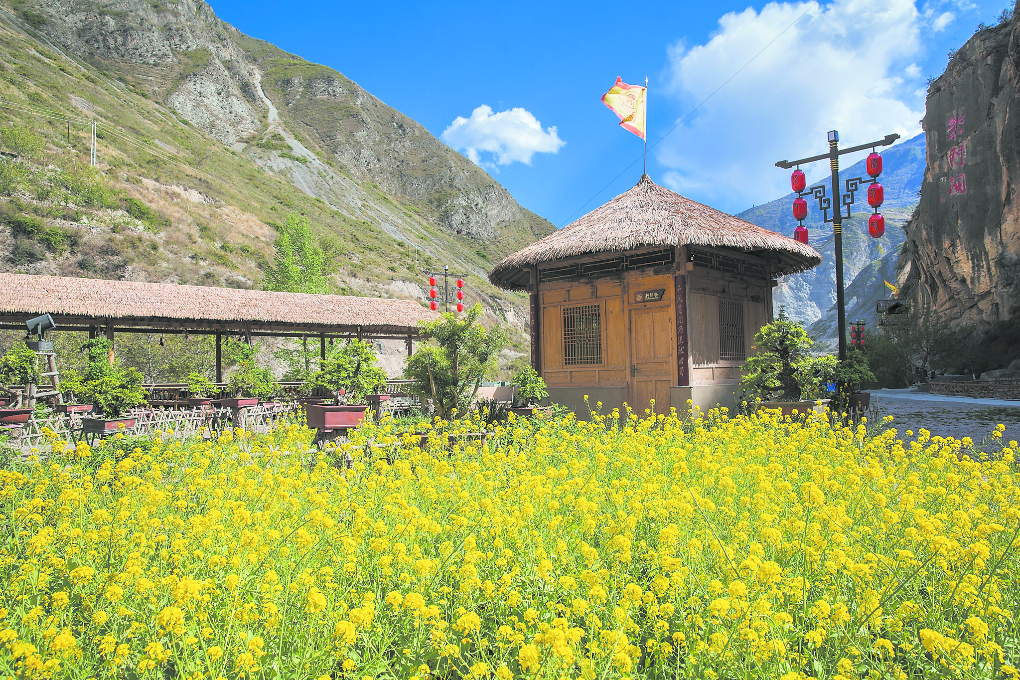“原來家家戶戶都是旱廁,現(xiàn)在都是沖水馬桶,村道邊的豬圈改成停車場,河灘地修建起游客中心,村容村貌煥然一新?!惫l(xiāng)副鄉(xiāng)長劉啟明說起青龍村的變化,感慨萬千。青龍村定位打造邊關(guān)軍事文化鄉(xiāng)村旅游,隨即,三國文化元素植入,恢復(fù)重建秦蜀交界的角樓,豐富的歷史沉淀喚醒了這座沉睡的山村。