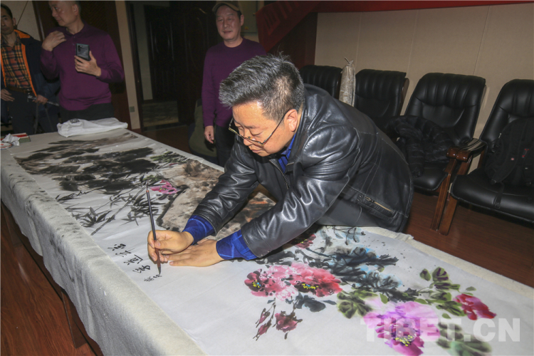 藝術(shù)家們還為道孚縣群眾贈送了創(chuàng)作的書畫作品。在麻孜鄉(xiāng)溝爾普村和康巴高原植物園,藝術(shù)家們深入群眾家中領(lǐng)略風(fēng)土人情,感受特色文化,了解脫貧歷程,共話未來發(fā)展,采集創(chuàng)作素材。小橋流水、民居藏房、產(chǎn)業(yè)基地、農(nóng)牧民忙碌的身影在他們手中幾經(jīng)勾勒,躍然紙上,一幅幅書畫作品描繪出農(nóng)牧民的幸福生活,訴說著道孚發(fā)展的滄桑巨變。(中國西藏網(wǎng) 通訊員/楊成龍 拉布拉姆)