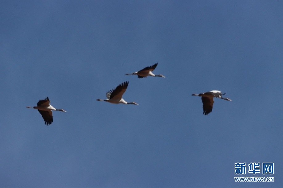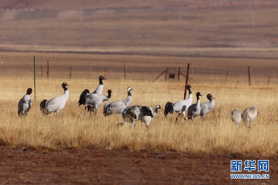 集群黑頸鶴和灰鶴。新華網發(fā)