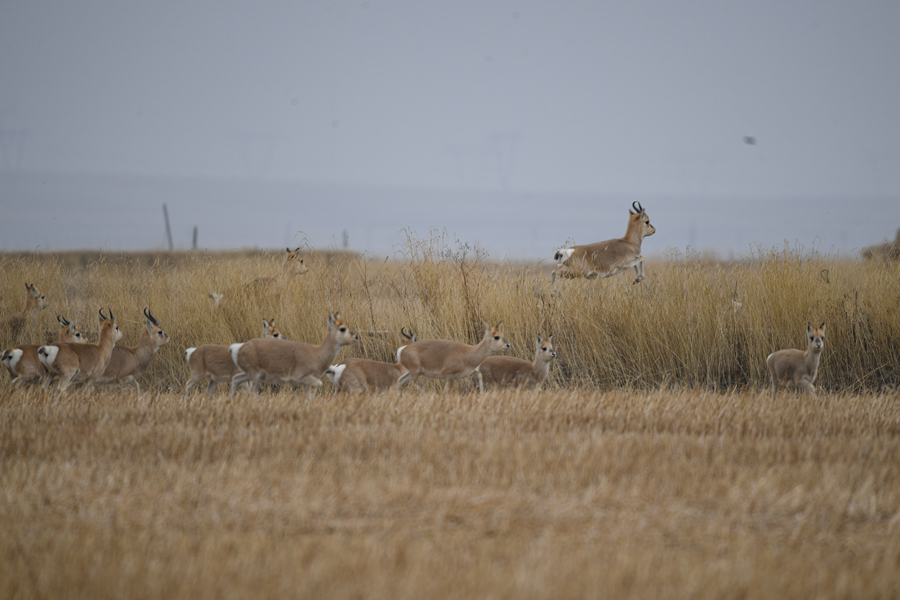 11月20日,一群普氏原羚在青海湖普氏原羚特護區(qū)內(nèi)活動。新華網(wǎng) 潘彬彬 攝