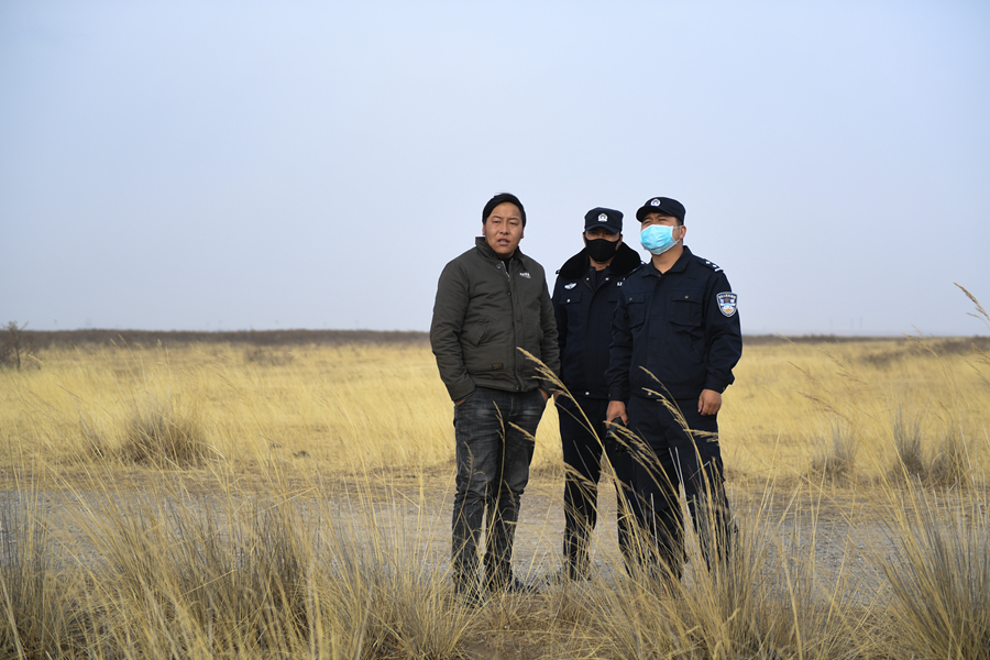 11月20日,剛察縣森林公安局哈爾蓋派出所民警秦輝武(右一)和輔警東知布在特護區(qū)內(nèi)進行日常巡護。新華網(wǎng) 潘彬彬 攝