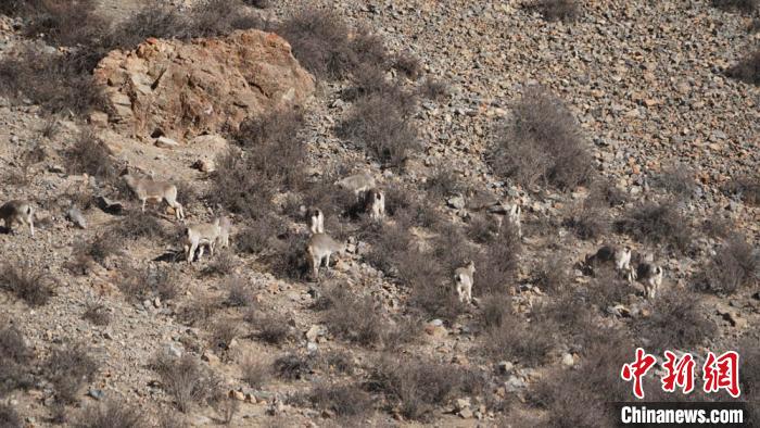 12月中旬,在地處祁連山區(qū)的甘肅肅南縣祁豐藏族鄉(xiāng)吊達坂附近,肅南縣融媒體中心記者拍攝到數(shù)群巖羊在公路旁的山坡上悠閑覓食。據(jù)目測,此次拍到公路旁覓食巖羊約有200多只。巖羊是國家二級重點保護野生動物,體型中等,形態(tài)介于野山羊與野綿羊之間。巖羊具有極高的攀巖技術(shù),可以在絕壁上自由跳躍,一跳可達二三米,因此也被稱為“巖壁上的精靈”。近年來,肅南縣深入推進祁連山國家級自然保護區(qū)生態(tài)文明建設(shè),加強保護區(qū)管理,實施退牧還草等措施,當(dāng)?shù)厣鷳B(tài)環(huán)境逐步改善,民眾保護意識不斷增強,使得當(dāng)?shù)匾吧鷦游飻?shù)量逐年增加。