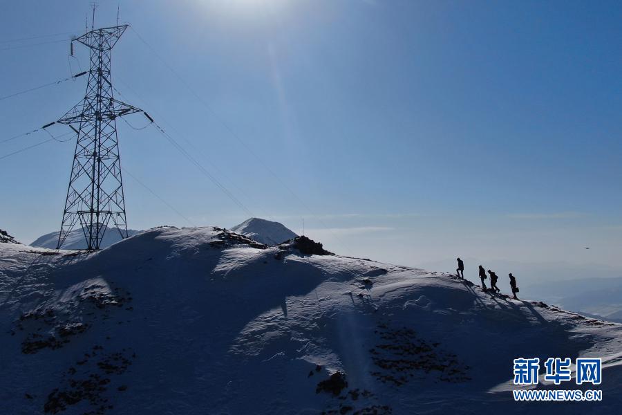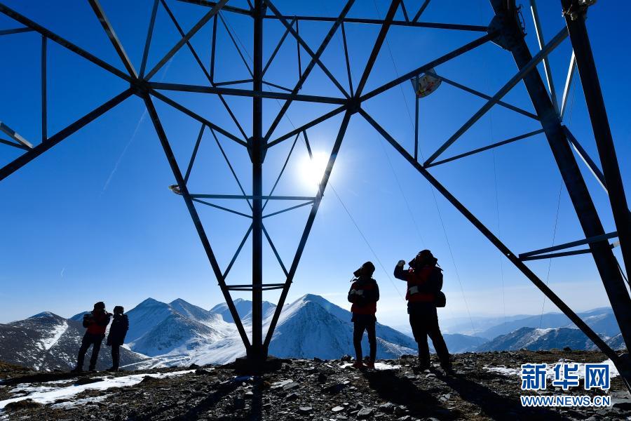 1月21日,國家電網(wǎng)西寧供電公司輸電運檢中心運檢人員在登山巡檢。新華社記者 張龍 攝