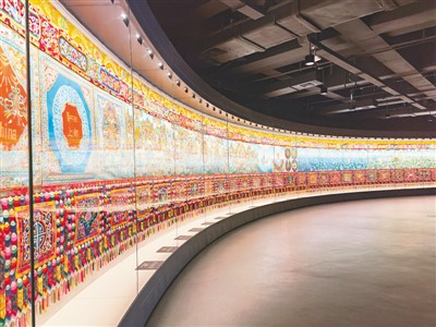 此后,《彩繪大觀》多次在國內(nèi)外展覽。青海藏醫(yī)藥文化博物館建設完成后,將它陳列在北館中。蜿蜒曲折的展線增添了觀展的趣味性,讓人感覺仿佛溯游于歷史長河。