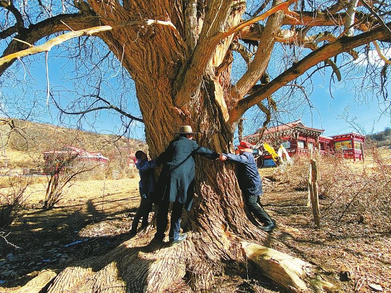 雅德鄉(xiāng)交納村的“紅軍樹”,要5人才能合抱。 四川日?qǐng)?bào) 蘭珍 攝