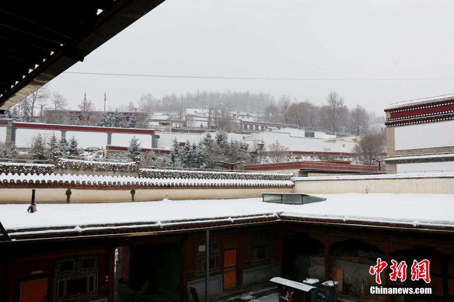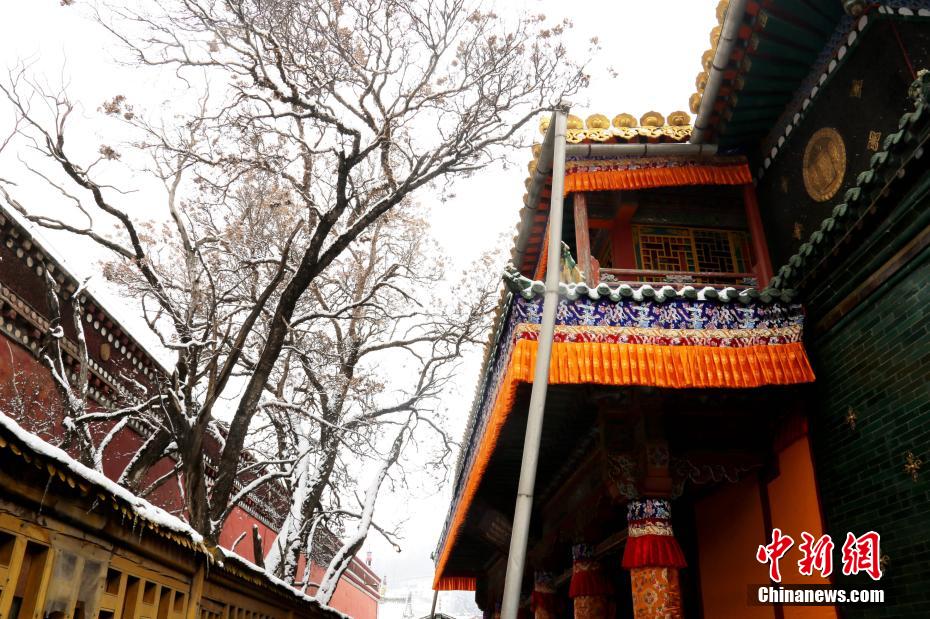 圖為塔爾寺主殿大金瓦殿前的雪景。張?zhí)砀?攝